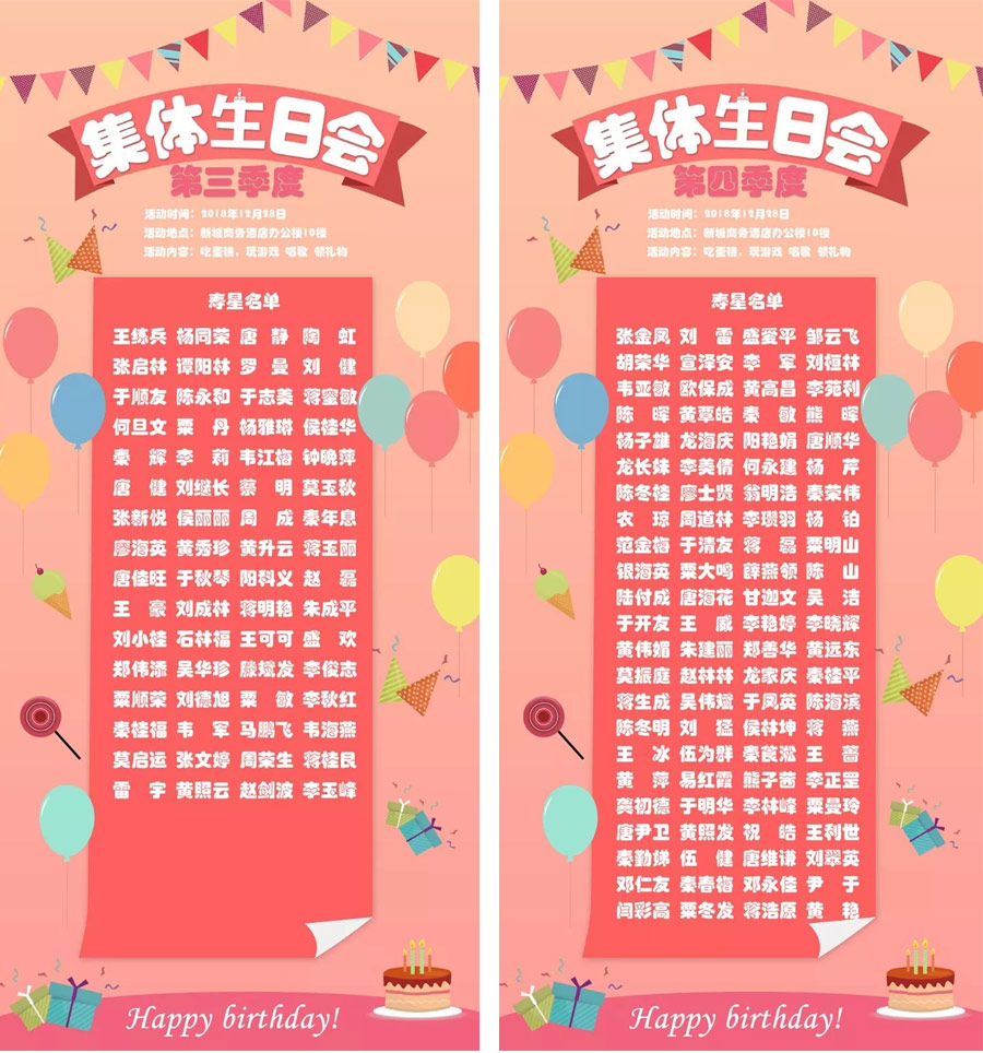 第三季度、第四季度生日會