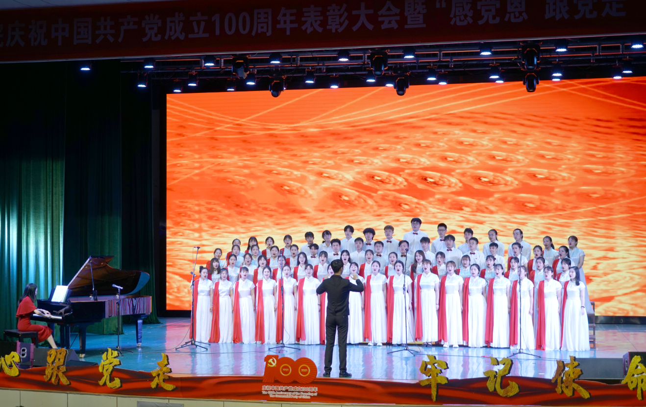 歌詠比賽現(xiàn)場,學(xué)校師生用熱情飽滿的姿態(tài)傳唱紅色經(jīng)典,獻禮百年華誕,用歌聲抒發(fā)對黨和祖國的熱愛,表達心中的向往和美好的祝愿。最后,領(lǐng)導(dǎo)嘉賓與學(xué)校師生合唱《沒有共產(chǎn)黨就沒有新中國》,氣勢磅礴的歌聲,激昂全場。