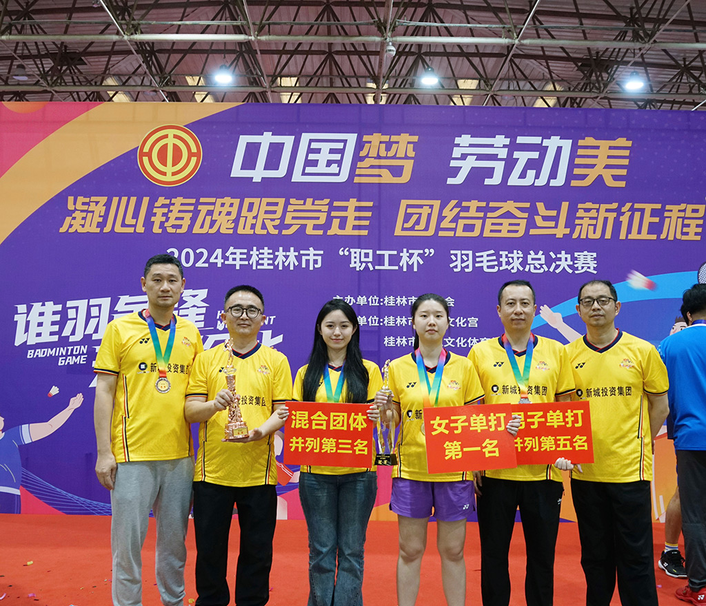 4月27日下午,由市總工會(huì)主辦的“中國夢(mèng) 勞動(dòng)美 凝心鑄魂跟黨走 團(tuán)結(jié)奮進(jìn)新征程”桂林市“職工杯”羽毛球比賽圓滿結(jié)束并舉行了頒獎(jiǎng)儀式。新城投集團(tuán)羽毛球隊(duì)經(jīng)過激烈角逐,在36支參賽隊(duì)伍中摘得多項(xiàng)榮譽(yù):由公司黨委副書記(主持工作)、副董事長(zhǎng)、總經(jīng)理朱毅擔(dān)任領(lǐng)隊(duì),吳萍明、龔志祥、楊衛(wèi)來、張欣婭、唐蒙組成的新城投集團(tuán)“黨旗映勝地”羽毛球隊(duì)榮獲團(tuán)體第三名;張欣婭榮獲女子單打第一名;楊衛(wèi)來榮獲男子單打第五名的優(yōu)異成績(jī)。