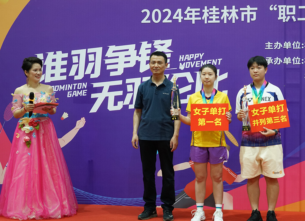 新科女單冠軍張欣婭,1999年6月出生于桂林,2021年7月入職桂林新城投資開發(fā)集團(tuán)有限公司下屬子公司桂林宏謀物業(yè)服務(wù)股份有限公司,10歲開始學(xué)習(xí)羽毛球,在良師益友肖教練的悉心教導(dǎo)下,水平不斷提高,曾在高中時(shí)期獲得桂林市女子單打第四名。進(jìn)入大學(xué)后,她擔(dān)任校羽毛球隊(duì)女隊(duì)隊(duì)長(zhǎng),代表學(xué)校參加過全國、省級(jí)、市級(jí)大型羽毛球比賽,取得全區(qū)第十二屆學(xué)生運(yùn)動(dòng)會(huì)羽毛球比賽普通本科女子單打組第五名,桂林市十大高校羽毛球比賽女子團(tuán)體第二名,第十屆“全區(qū)高校職工羽毛球”比賽優(yōu)秀裁判員等榮譽(yù)。入職宏謀物業(yè)公司以后,她仍堅(jiān)持利用業(yè)余時(shí)間練習(xí)羽毛球,既提高了身體的靈活性和協(xié)調(diào)性,增強(qiáng)了專注力、判斷力和反應(yīng)能力,又增進(jìn)了同事間的友誼和團(tuán)隊(duì)凝聚力,有利于更好地應(yīng)對(duì)挑戰(zhàn),以飽滿的熱情投入到各項(xiàng)工作中。