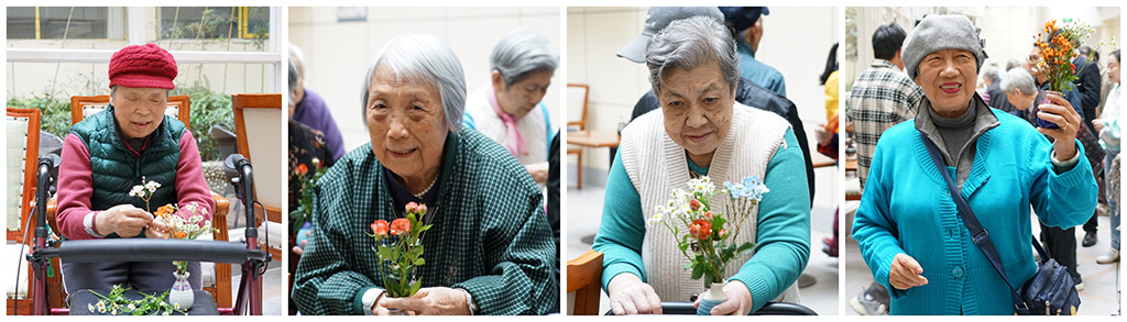 黨課結(jié)束后,老人們?cè)邳h員志愿者的陪伴下開展插花活動(dòng)。志愿者們將一個(gè)個(gè)小巧精致的花瓶親手送到每一位老人的手中。在一片歡聲笑語(yǔ)中,大家一邊享受插花樂趣,一邊分享彼此心得體會(huì),攜手創(chuàng)作出一件件精美的插花作品??粗约河H手制作的作品,老人們臉上流露出深深的成就感和自豪感。