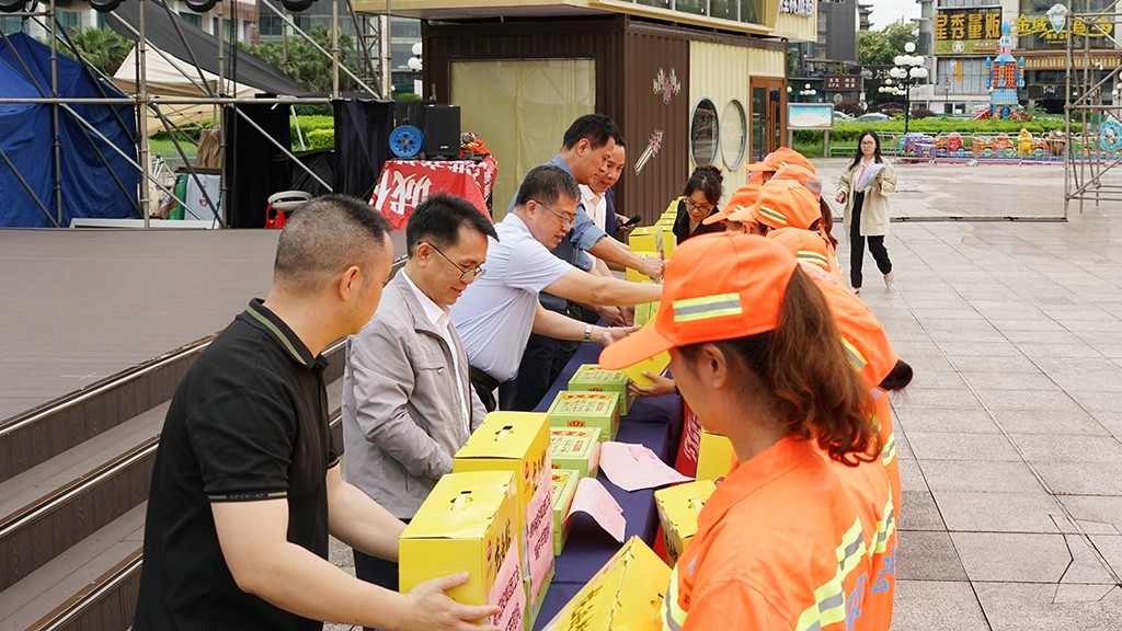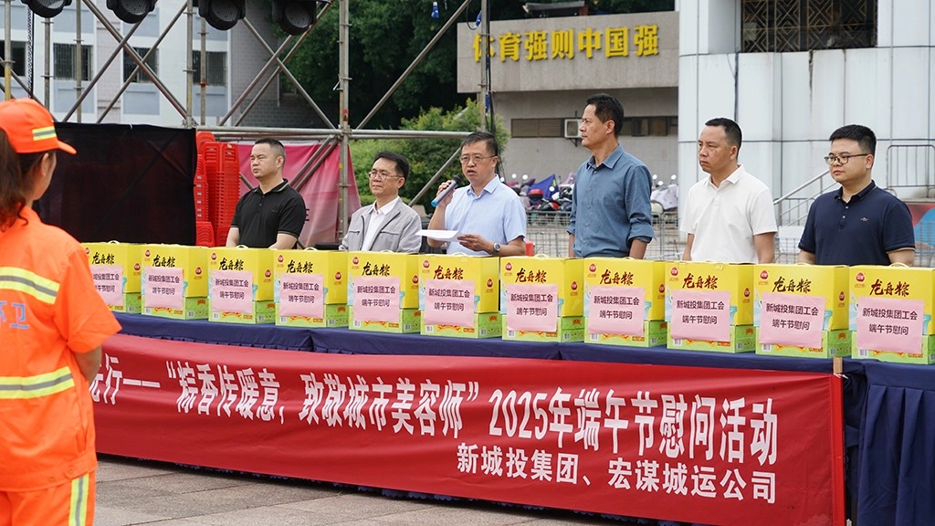 為深入踐行習(xí)近平總書記“以人民為中心”“勞動(dòng)最光榮”的指導(dǎo)思想,切實(shí)把組織關(guān)懷送到基層勞動(dòng)者心坎上,進(jìn)一步提升環(huán)衛(wèi)職工隊(duì)伍的職業(yè)認(rèn)同感和幸福感,2025年5月29日端午節(jié)前夕,新城投集團(tuán)聯(lián)合宏謀城運(yùn)公司在秀峰區(qū)中心廣場(chǎng)舉辦“粽香傳暖意,致敬城市美容師”端午節(jié)慰問活動(dòng)。此次活動(dòng)得到市城管委,秀峰區(qū)政府、城管局、環(huán)衛(wèi)站的大力支持與指導(dǎo)。市城管委黨組成員、副主任蔣毅出席活動(dòng)。受新城投集團(tuán)黨委書記、董事長(zhǎng)朱毅委托,黨委副書記、紀(jì)委書記、工會(huì)主席譚力源代表集團(tuán)黨委、領(lǐng)導(dǎo)班子及全體職工,向奮戰(zhàn)在環(huán)衛(wèi)一線的干部職工致以節(jié)日問候。