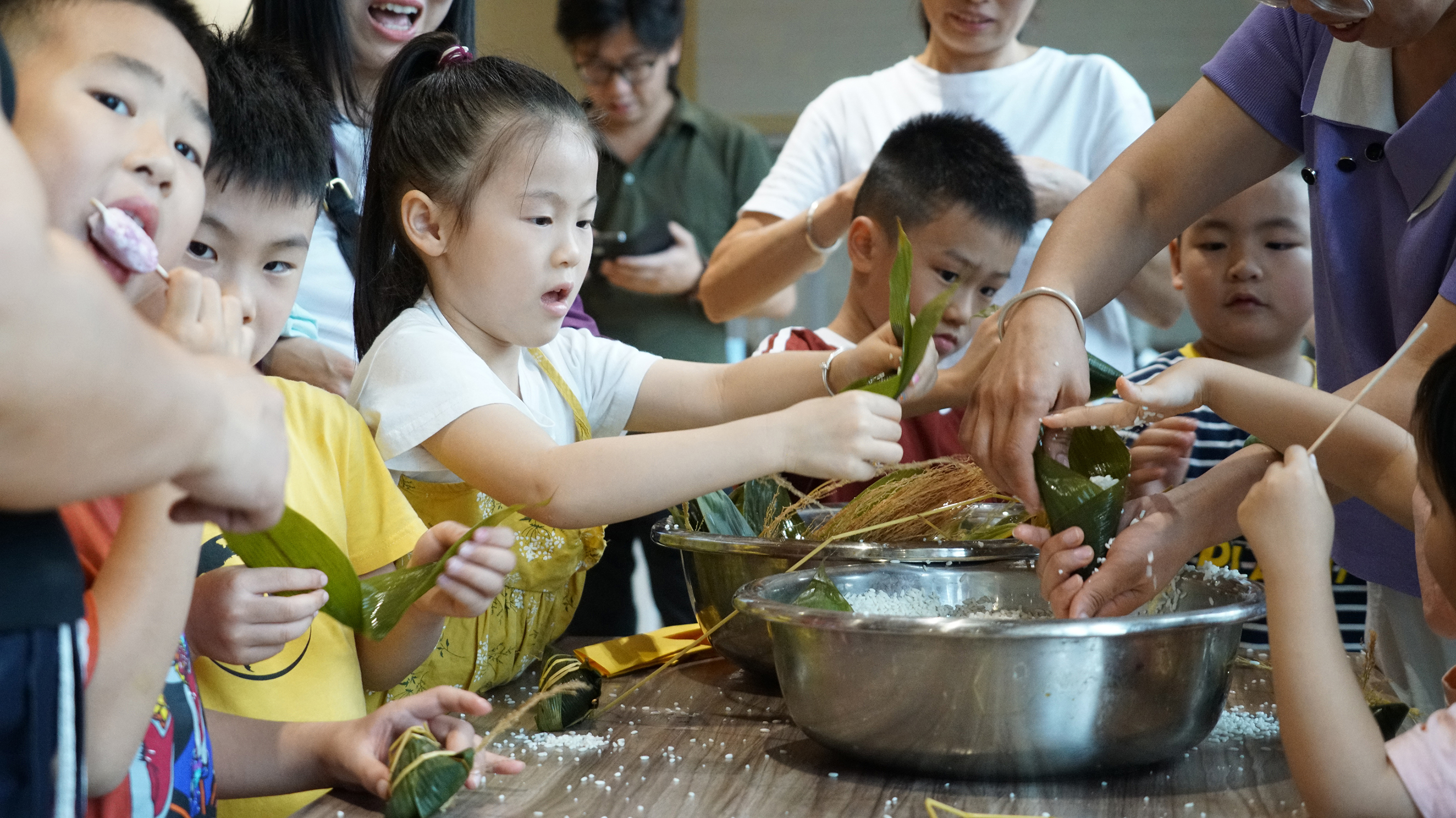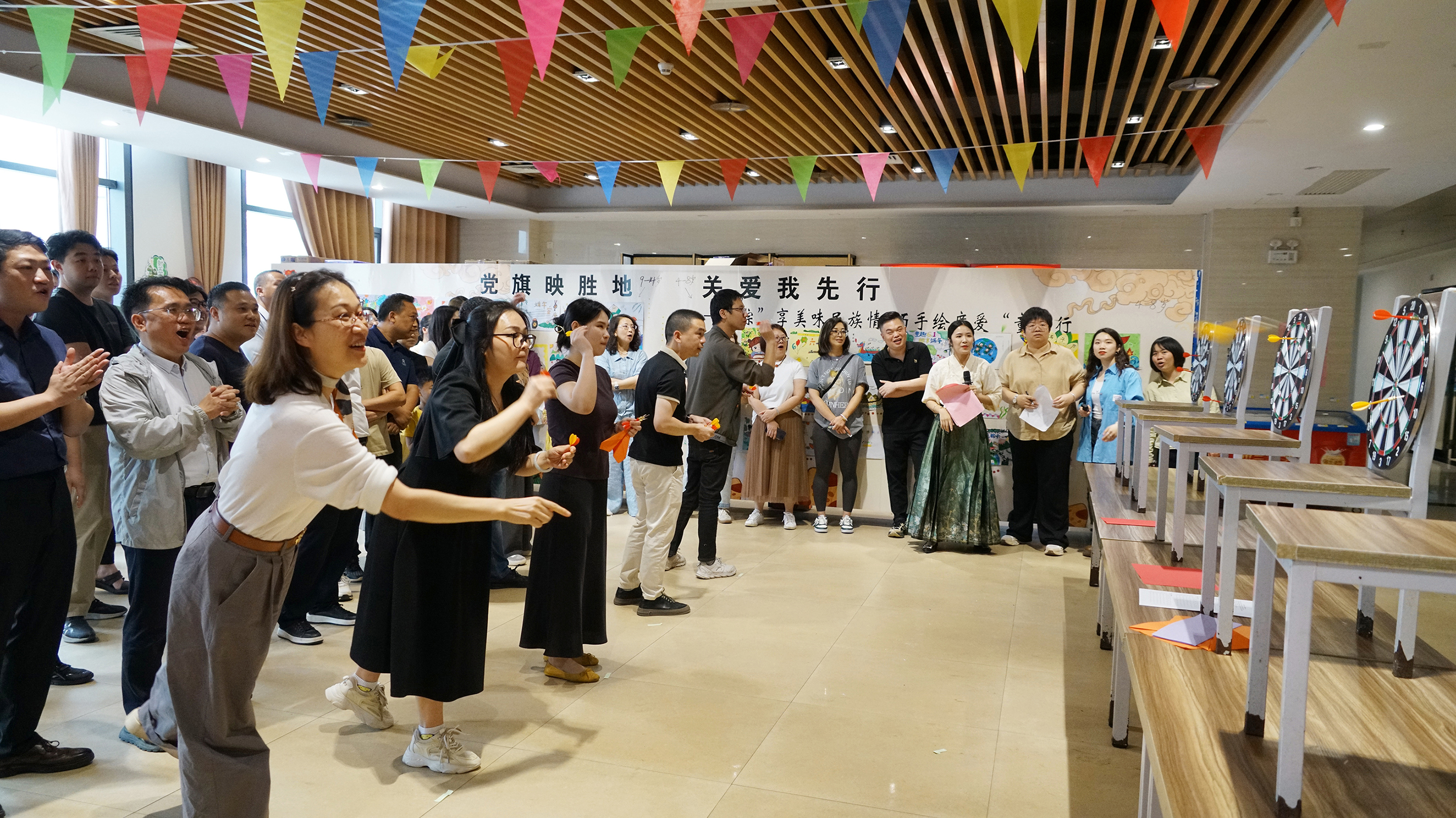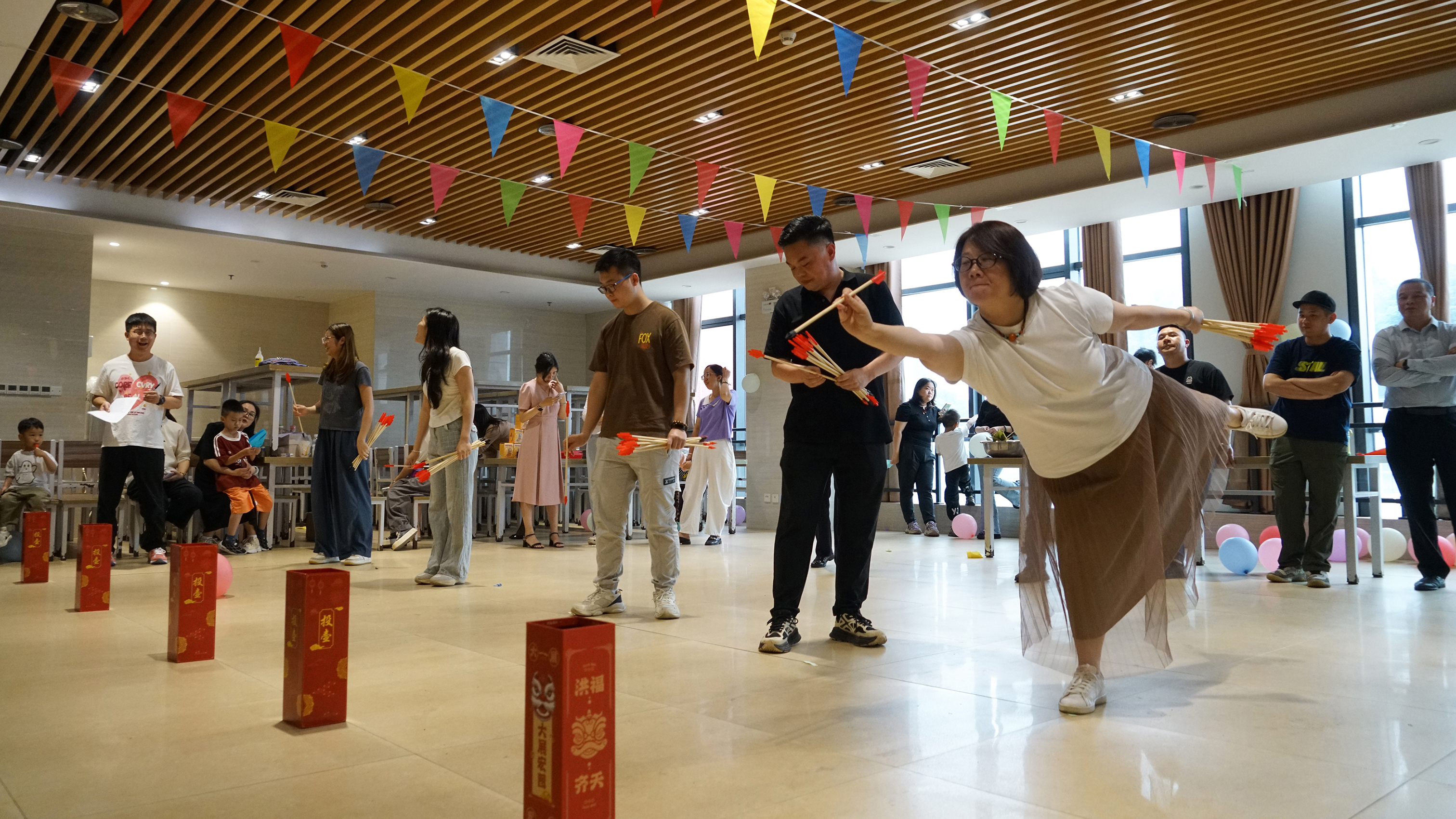 “家企同行·國風(fēng)非遺——民族文創(chuàng),與‘粽’不‘童’”趣味游戲挑戰(zhàn)環(huán)節(jié),將活動(dòng)氛圍推向高潮。童年紙飛機(jī)、端午射五毒、趣味投壺三大趣味游戲讓職工與孩子都沉浸其中。在童年紙飛機(jī)游戲中,為了能讓紙飛機(jī)飛得更遠(yuǎn)、更久,大家興致勃勃地嘗試著各種折法,隨后用力一擲,紙飛機(jī)在空中劃出一道道優(yōu)美的弧線,有的飛得又高又遠(yuǎn),有的則在空中翻轉(zhuǎn)幾圈后穩(wěn)穩(wěn)落地,看著自己折的紙飛機(jī)歡呼雀躍,仿佛回到了無憂無慮的童年時(shí)光。端午射五毒游戲則充滿了傳統(tǒng)韻味,大家手持飛鏢,瞄準(zhǔn)靶心,每當(dāng)有人射中五毒圖案,周圍就會(huì)響起一陣歡呼聲,大家在歡聲笑語中感受著端午節(jié)的傳統(tǒng)習(xí)俗。趣味投壺游戲更是熱鬧非凡,參與者們瞄準(zhǔn)壺口,或站或蹲,調(diào)整著姿勢和力度,隨著一次次投中,現(xiàn)場的氣氛也一次次被點(diǎn)燃,歡呼聲、加油聲此起彼伏。歡聲笑語回蕩在整個(gè)活動(dòng)現(xiàn)場。各組成員在比賽中相互配合、相互鼓勵(lì),展現(xiàn)了團(tuán)隊(duì)合作的力量。最終,根據(jù)各組獲得的總分,評(píng)選出冠軍組,大家在歡樂中感受到了團(tuán)隊(duì)的溫暖與力量。