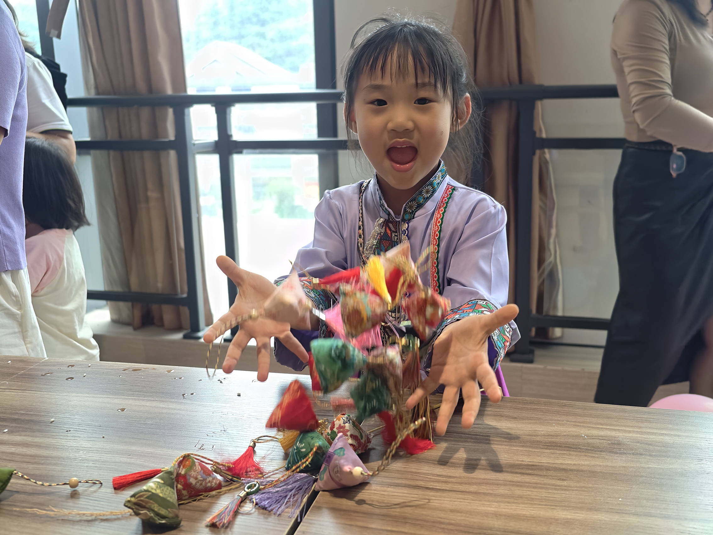 同時(shí),大家在歡快的氛圍中集體移步至“非遺香囊”區(qū)。在這里,冠軍組憑借出色的表現(xiàn)獲得了優(yōu)先挑選香囊的特權(quán),其余組別則按照游戲總分排名依次挑選心儀的香囊。大家通過端午節(jié)香包深入了解中國各民族在端午節(jié)制作、佩戴香囊的悠久歷史和豐富的非遺傳承文化,感受到傳統(tǒng)文化的獨(dú)特魅力?;顒?dòng)現(xiàn)場還準(zhǔn)備了豐富的下午茶糕點(diǎn)、粽子等美食,讓大家在享受文化體驗(yàn)的同時(shí),也能滿足味蕾的享受。